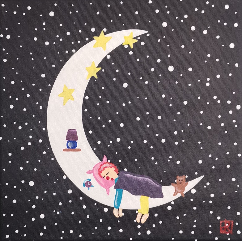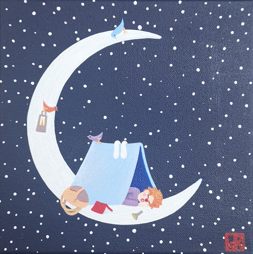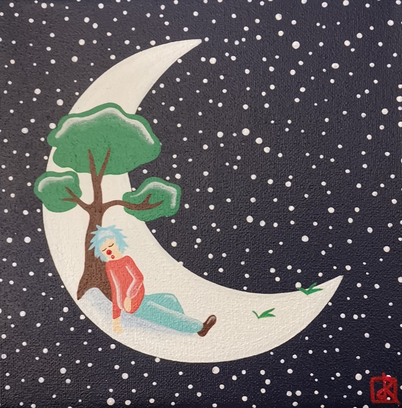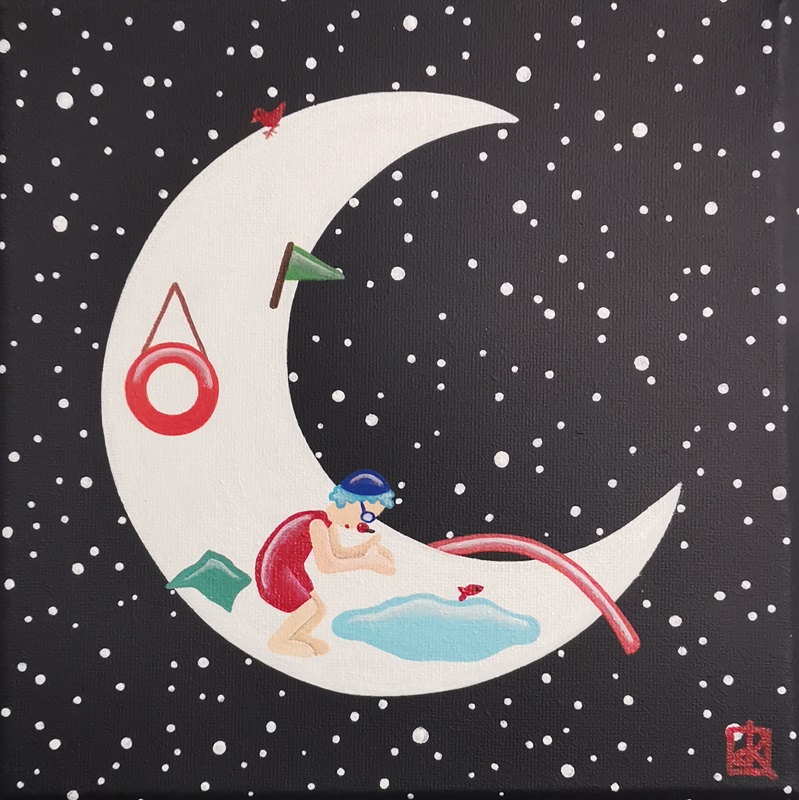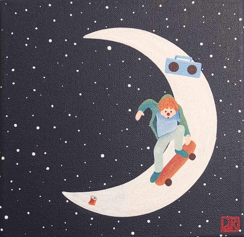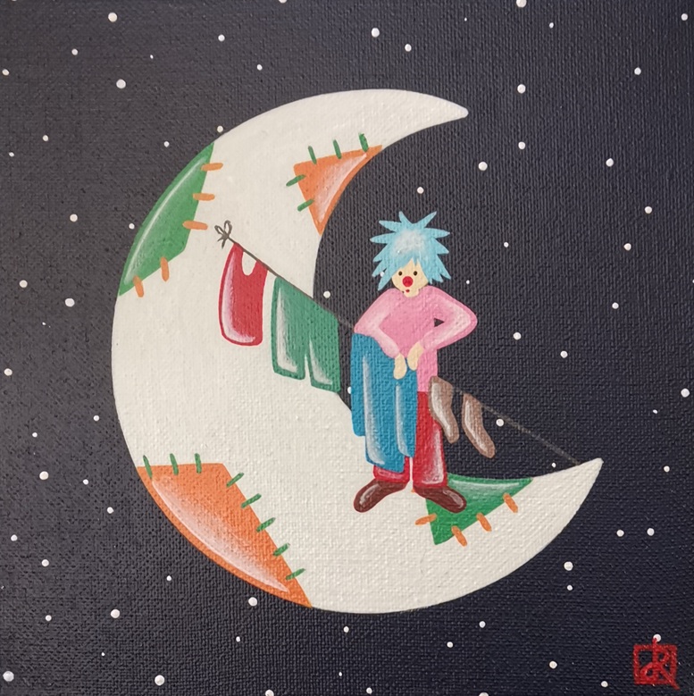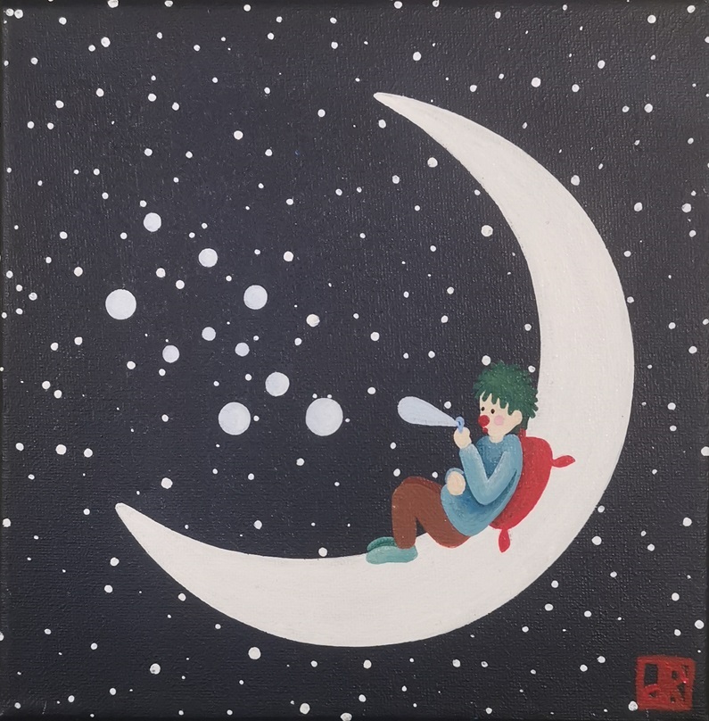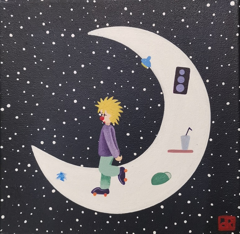 La lune est habitée : de petits personnages vivent tranquillement sur l’astre de la nuit. Leur monde est bien éloigné du nôtre, car sans contraintes et sans limites imposées par les adultes. Il ne les pousse pas à grandir, et permet à leur imagination et insouciance d’enfants de perdurer éternellement…